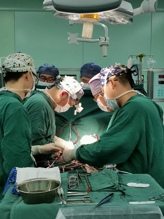 在心胸外科周珉主任帶領(lǐng)下,方大爺在體外循環(huán)下行Bentall術(shù)。