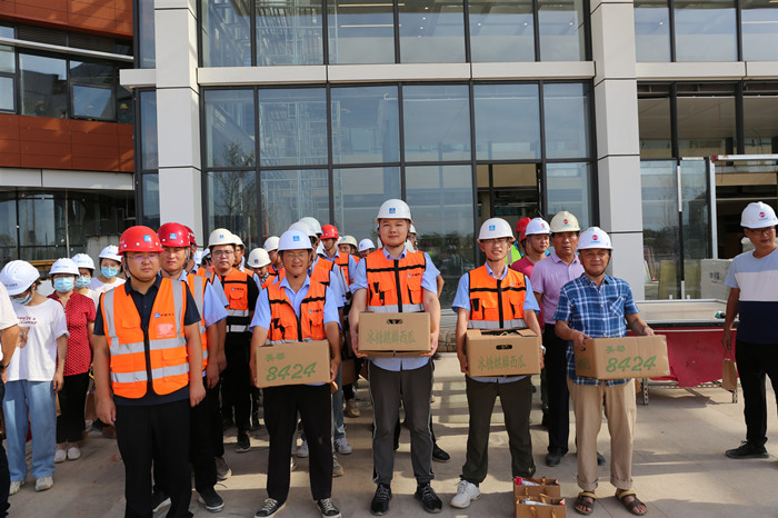 目前,四省邊際中心醫(yī)院項(xiàng)目現(xiàn)場(chǎng)每天有1000多名一線職工頂著高溫,堅(jiān)守一線。曹敏書記仔細(xì)詢問(wèn)工程建設(shè)進(jìn)展情況,將防暑降溫用品一一遞到職工手上,為他們送上關(guān)心關(guān)愛(ài),并叮囑高溫作業(yè)要做好防護(hù)措施,注意安全,做到勞逸結(jié)合。
