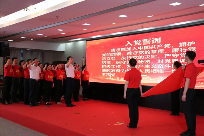 “我志愿加入中國共產(chǎn)黨,擁護(hù)黨的綱領(lǐng),遵守黨的章程……”25名新黨員在黨委書記陳成水的領(lǐng)誓下作入黨宣誓,這是一次精神的洗禮,也是鼓勁揚(yáng)帆再出發(fā),鏗鏘有力的聲音久久回蕩。