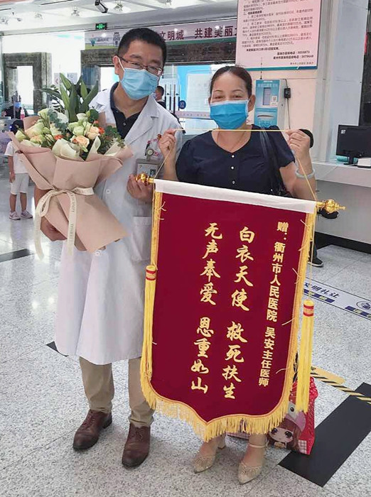 從今年2月開始,吳安一直在天津進(jìn)修,這天剛好是他回衢州市人民醫(yī)院工作的第一天,收到錦旗的他表示十分感動(dòng)。