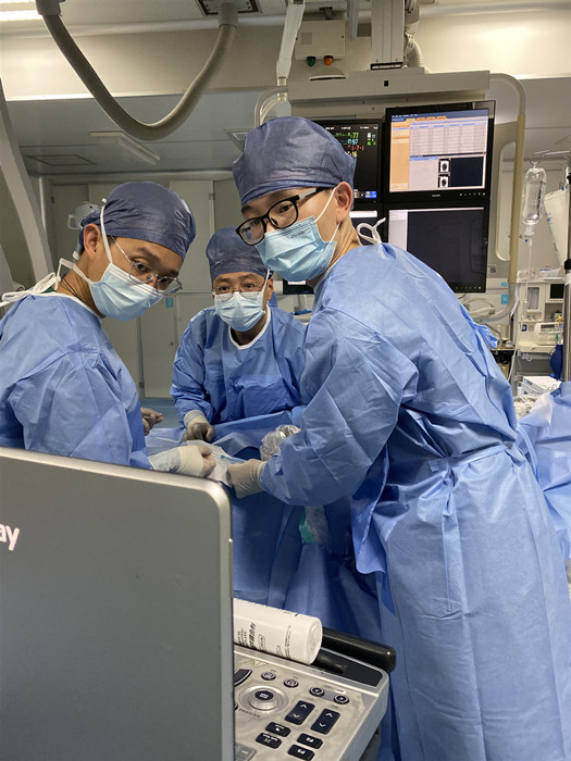術(shù)前,陸煒主任聯(lián)合超聲科副主任醫(yī)師劉雪平詳細(xì)評(píng)估了徐阿姨血管通路狹窄情況,發(fā)現(xiàn)徐阿姨前臂血透穿刺點(diǎn)重度狹窄。通過(guò)血管外科和超聲科的無(wú)縫銜接,1小時(shí)后,手術(shù)順利完成,術(shù)后,徐阿姨便能在人工動(dòng)靜脈瘺處觸及明顯的震顫,生命通道順利打通。