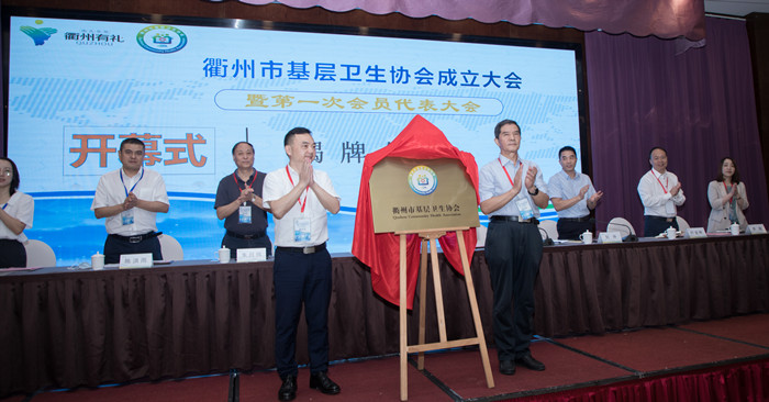 浙江省基層衛(wèi)生協(xié)會會長王國敬和市衛(wèi)健委黨委書記、主任廖利軍為衢州市基層衛(wèi)生協(xié)會揭牌