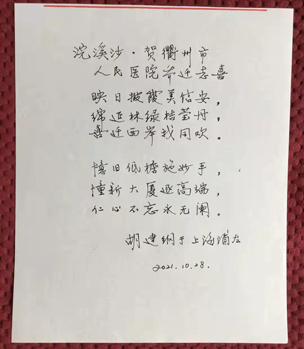 10月28日,四省邊際中心醫(yī)院正式啟用,遠(yuǎn)在上海的老院長(zhǎng)胡建綱先生特意發(fā)來(lái)賀信,為四省邊際中心醫(yī)院搬遷啟用送上最真摯的祝福!