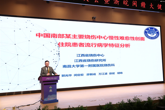 南昌大學(xué)附屬第一醫(yī)院教授郭光華作《中國(guó)南部某主要燒傷中心慢性難愈性創(chuàng)面住院患者流行病學(xué)特征分析》主題演講