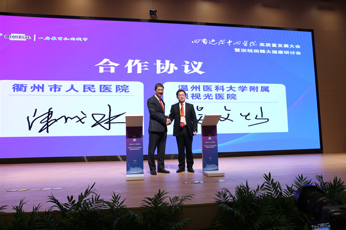市人民醫(yī)院黨委書(shū)記陳成水與溫州醫(yī)科大學(xué)附屬眼視光醫(yī)院院長(zhǎng)吳文燦簽訂合作框架協(xié)議