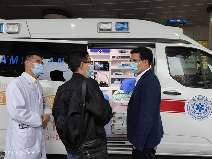 10月28日下午,浙江省衛(wèi)健委副主任俞新樂(lè)、醫(yī)政醫(yī)管與藥物政策處處長(zhǎng)付鐵紅一行來(lái)到衢州市人民醫(yī)院調(diào)研5G智慧急救系統(tǒng)。市衛(wèi)健委黨委書記、主任廖利軍,副書記、副主任徐天才,市急救中心副主任龔慧飛,市人民醫(yī)院副院長(zhǎng)何冬娟以及醫(yī)院相關(guān)部門負(fù)責(zé)人陪同。