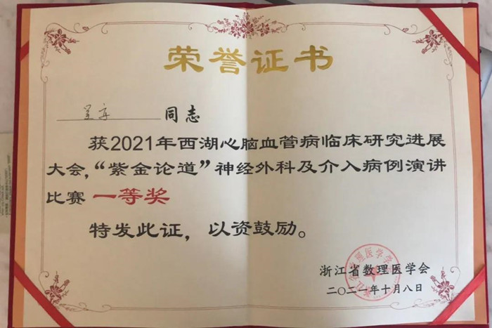 10月8日,2021年西湖心腦血管病臨床研究進展大會在杭州召開。我院神經(jīng)外科主任醫(yī)師吳安在浙江省“紫金論道”神經(jīng)外科青年醫(yī)生病例演講比賽中榮獲一等獎。
