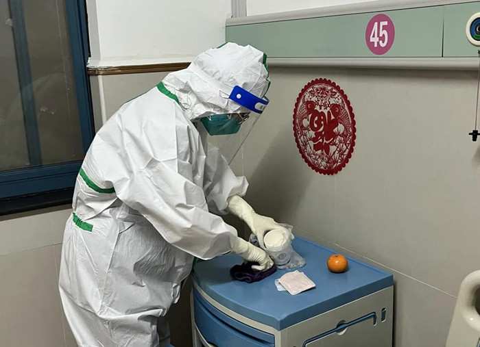 作為衢州市新冠肺炎確診病例收治的定點醫(yī)院,在浮石院區(qū),隔離病房負責人方琪已經(jīng)在這里度過了第三個春節(jié),和她一同并肩作戰(zhàn)的,還有來自院感處、隔離病房的醫(yī)護人員和后勤保障人員,清潔消毒、心理輔導、記錄飲食需求……在繁雜瑣碎中守護患者?!拔覀兡馨残牡貓允卦诠ぷ鲘徫簧希x不開大后方的支持?!备綦x病房的護士韓圓說,她和小伙伴們在這里度過了一個難忘又特殊的春節(jié)。