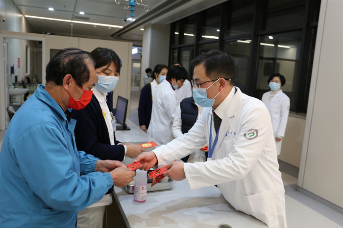 “新年好!大家辛苦了!”在門(mén)急診、病房,院長(zhǎng)葉金林親切地與醫(yī)護(hù)人員握手,為堅(jiān)守一線的醫(yī)護(hù)人員送上新春祝福。