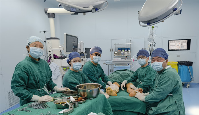 創(chuàng)面修復(fù)科王健團(tuán)隊(duì)為“膚生工程”救助患者實(shí)施雙下肢難愈性創(chuàng)面清創(chuàng)、穿支皮瓣轉(zhuǎn)移覆蓋與植皮術(shù)。