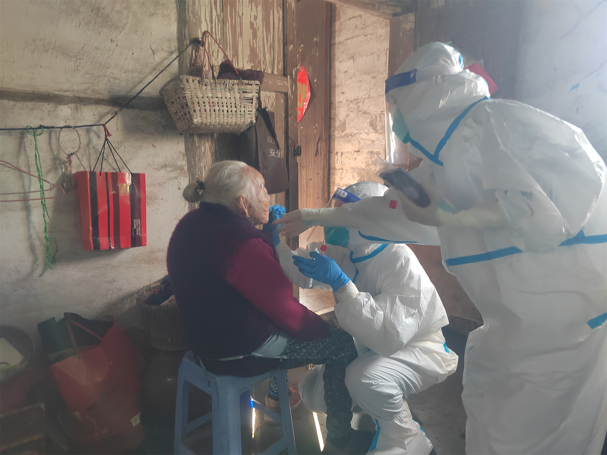 “核酸檢測應(yīng)急隊(duì)隊(duì)員,他們有的從家里趕來,有的剛下手術(shù)臺。只要有需要,我們隨時投入防疫任務(wù)!”院感處沈紅艷是此次核酸采樣應(yīng)急隊(duì)組長。為確保核酸采樣工作“應(yīng)檢盡檢,不漏一人”,全面筑牢防疫屏障,沈紅艷帶著核酸檢測隊(duì)員上門為后溪鎮(zhèn)上棠村行動不便的老年人、殘疾人等人群采集樣本。