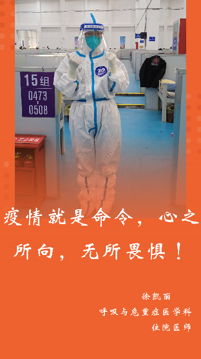徐凱麗,樂觀開朗,技術(shù)過硬,負(fù)責(zé)方艙內(nèi)患者的診療工作,查房、換藥、心理疏導(dǎo)、協(xié)調(diào)物資,日常雖然忙碌,但依然信心滿滿。
