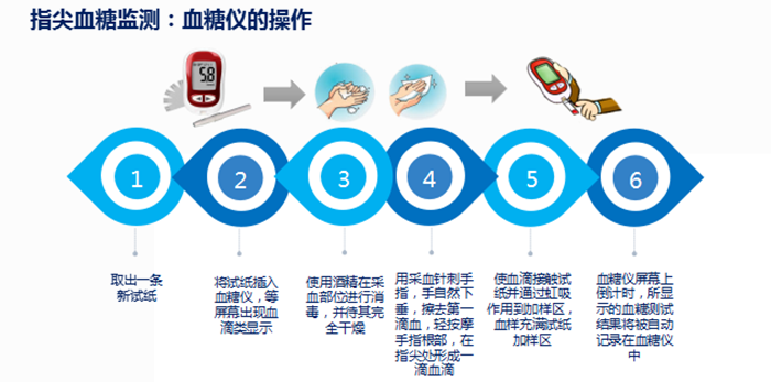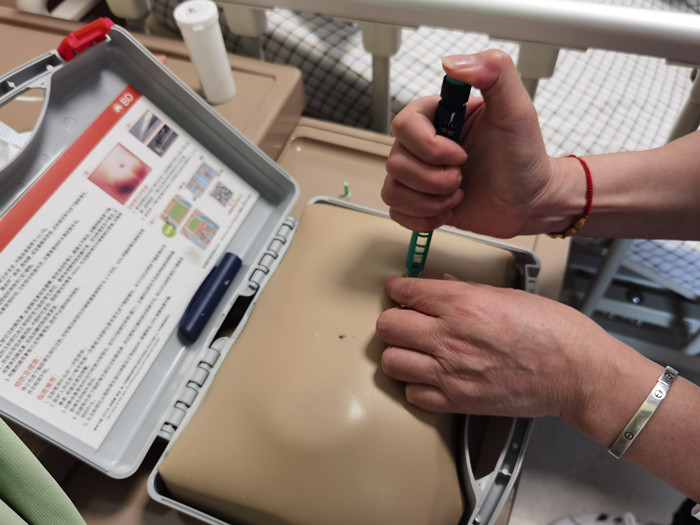 “測試血糖時應(yīng)輪換采血部位,應(yīng)在手指側(cè)面采血,將采血針緊靠在手指側(cè)面,棄去第一滴血......”很快,姜先生康復(fù)出院了,出院時祝春燕細心地指導(dǎo)姜先生使用血糖儀。