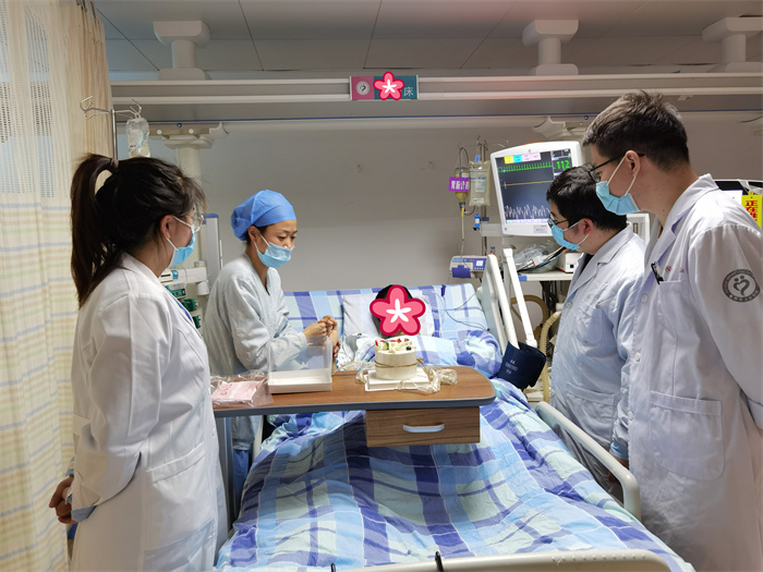 “以病人為中心,以質(zhì)量為核心?!笔侵匕Y醫(yī)學科一直踐行的服務宗旨。由于重癥醫(yī)學科的特殊性,護理時需要多一點耐心和細心,除了基礎護理,巾幗文明崗的崗員們更注重人文關(guān)懷,為患者送上生日蛋糕、護送患者到戶外散心,暖心舉動獲得廣泛稱贊。新冠肺炎疫情期間,由于探視限制,崗員們通過“云探視”,架起了患者與家屬的溝通橋梁,也架起了醫(yī)患之間的“連心橋”。