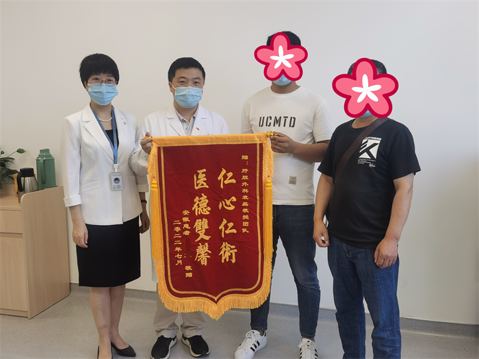“衢州市人民醫(yī)院值得信任,是老百姓值得托付的好醫(yī)院?!背鲈寒?dāng)天,靳女士和家屬向袁磊博士團(tuán)隊上送上錦旗和感謝信,“袁磊博士團(tuán)隊把困難和風(fēng)險留給自己,把希望留給患者,這份恩情,一生銘記?!?