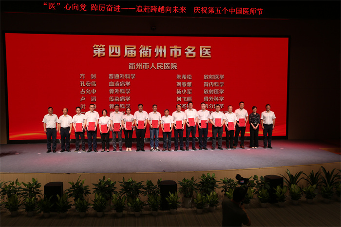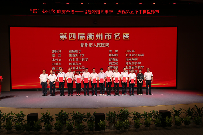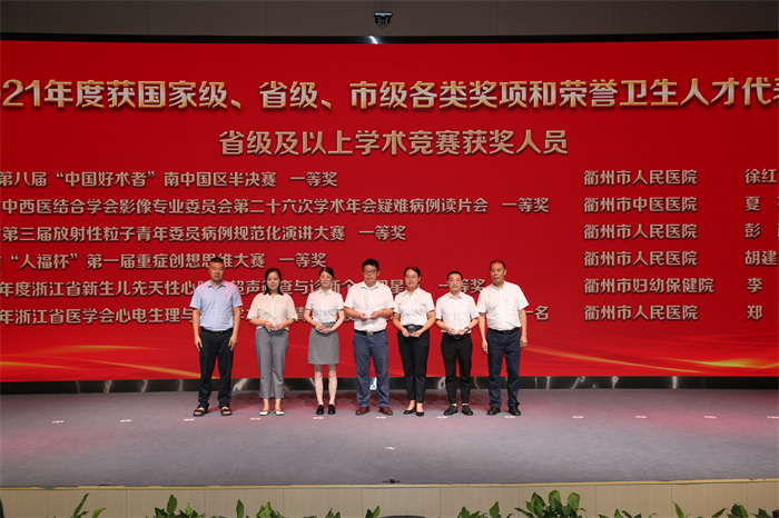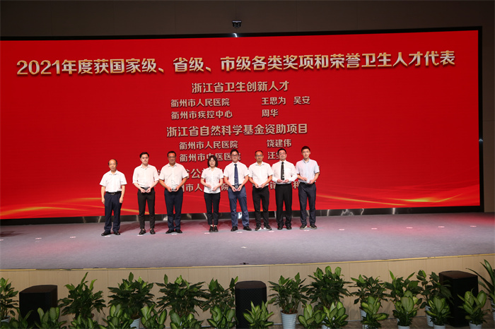 大會(huì)為獲得2021年國(guó)家、省、市級(jí)榮譽(yù)的醫(yī)師代表頒發(fā)“衛(wèi)健驕子、杏林翹楚”獎(jiǎng)杯,為第四屆衢州市名醫(yī)名中醫(yī)專家頒發(fā)證書(shū)。