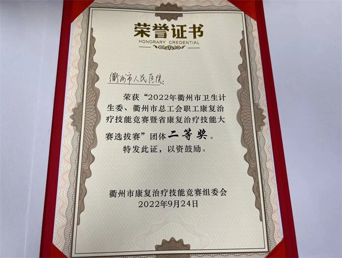 以賽促學(xué)、以賽促練。此次競賽,充分展示了我院康復(fù)治療團(tuán)隊的綜合實力,增進(jìn)了衢州康復(fù)治療隊伍的學(xué)習(xí)交流,為全面提升全市康復(fù)臨床技術(shù)水平以及衢州地區(qū)康復(fù)事業(yè)的發(fā)展奠定了堅實的基礎(chǔ)。