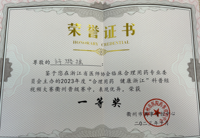 我院青年藥師許璐搖獲全市科普短視頻大賽一等獎