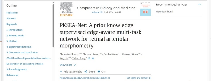 近日,衢州市人民醫(yī)院(溫州醫(yī)科大學(xué)附屬衢州醫(yī)院)眼科中心童毓華主任醫(yī)師團(tuán)隊(duì)與電子科技大學(xué)長三角研究院(衢州)王卓然教授團(tuán)隊(duì)合作的論文《PKSEA-Net用于視網(wǎng)膜小動脈形態(tài)測量的先驗(yàn)知識監(jiān)督邊緣感知多任務(wù)網(wǎng)絡(luò)》,在中科院二區(qū)top期刊(小類一區(qū))《Computers in Biology and Medicine》上發(fā)表。