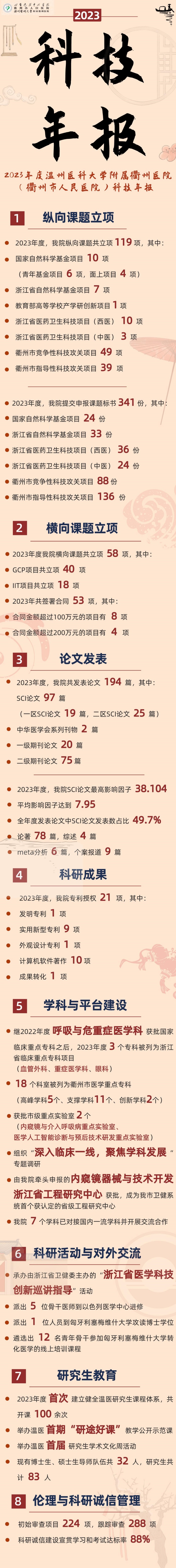 碩果累累!我院2023年度科技年報出爐 文章來源:科技處 作者:王厲輝 點擊數(shù):1527 更新時間:2024-02-08 上一篇: 好消息!瞿佳教授、吳文燦教授名醫(yī)工作站落戶衢州 下一篇: 囊是假的,痛卻很“石”在