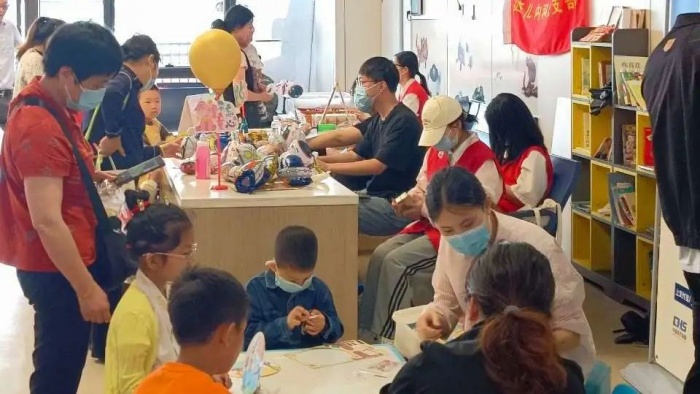 活動現(xiàn)場,小朋友們盡情玩耍,一旁陪伴的“大朋友”也樂在其中。