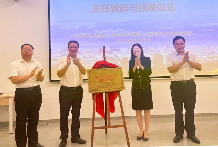 為提升臨床與科研的綜合能力,搭建青年醫(yī)師成果分享、思想交流、合作互通的橋梁,有效輻射周邊地區(qū)影像學(xué)科發(fā)展。6月29日,iRADIOLOGY 《融合影像學(xué)(英文)》四省邊際中心醫(yī)院工作站成立儀式暨學(xué)術(shù)交流活動(dòng)在我院舉行。清華大學(xué)出版社副總編孫宇,iRADIOLOGY《融合影像學(xué)(英文)》雜志執(zhí)行主編高波,醫(yī)院黨委委員、紀(jì)委書(shū)記徐禮鋒,放射科主任朱希松出席揭牌成立儀式并致辭。
