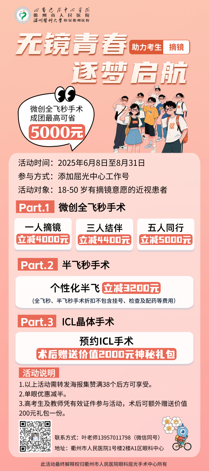 近視的你,是時(shí)候,為近視畫(huà)一個(gè)完美的句號(hào)。我院推出暑期摘鏡活動(dòng),為廣大考生們量身定制清晰未來(lái)!